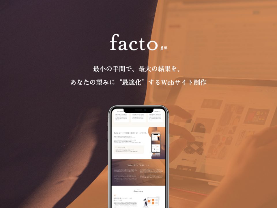Webサイトを作りたいがコストはかけたくない。しかしせっかく作るなら、本当に使えるWebサイトにしたい。factoはそんなあなたにピッタリのWebサイト制作サービスです。 もちろんスマホやタブレットにも対応しています。